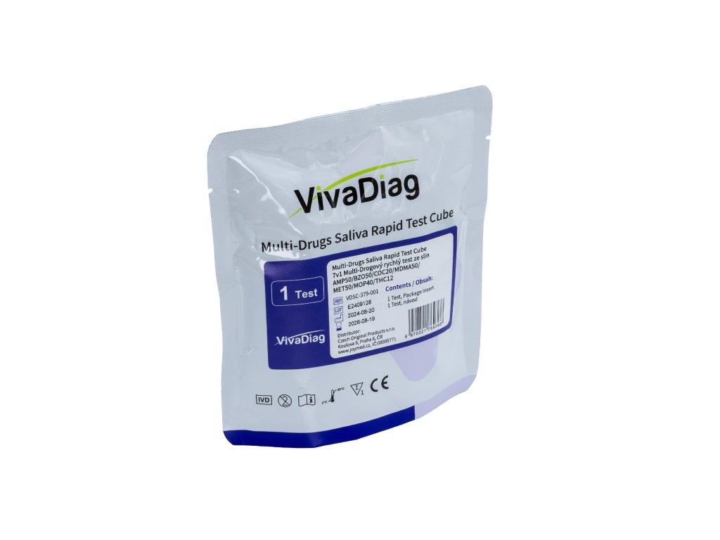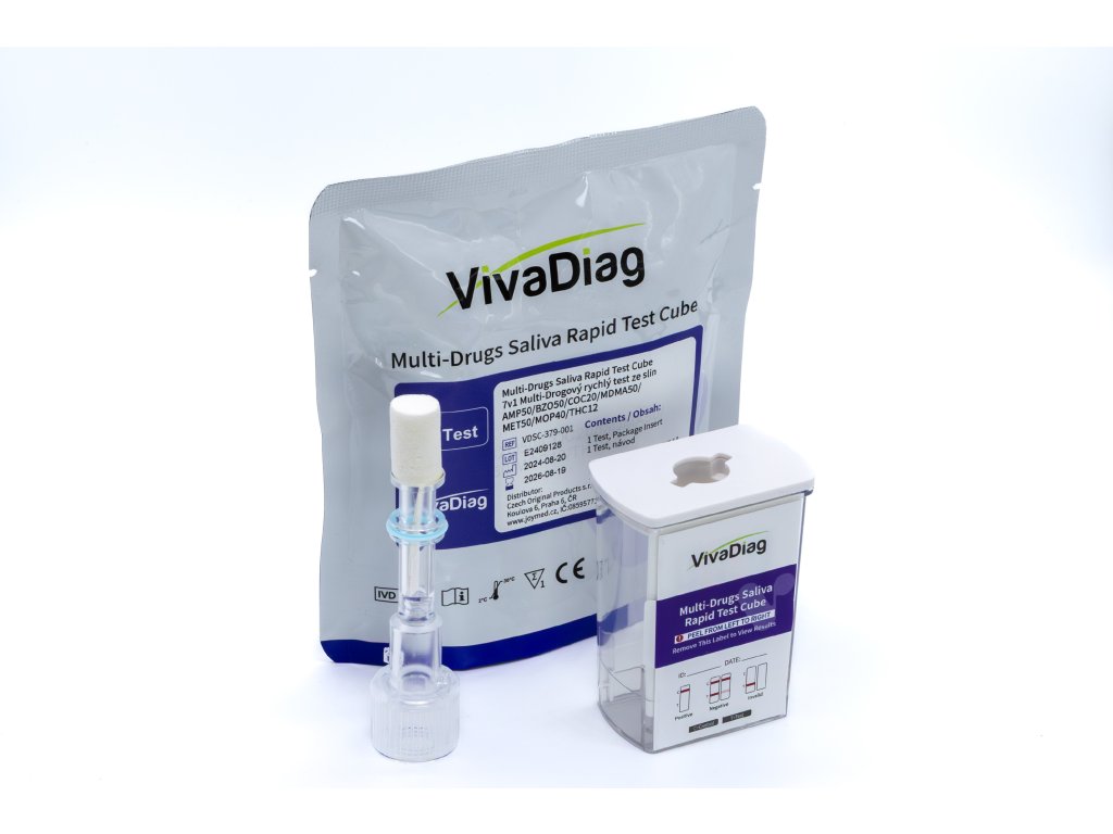 Rychlý imunochromatografický test pro detekci 7 návykových látek ze vzorku slin. Výsledek do 10 minut bez nutnosti laboratorního vybavení. Určeno pro profesionální použití ve zdravotnictví, pracovních agenturách, léčebnách nebo při krizovém testování.